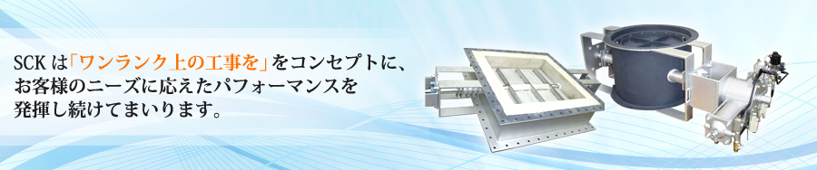 また、当社工場では各種ダンパの設計から製造を承っており、中でも長年の築炉工事の経験を生かした耐火ダンパの製造には自信があります。これからも【ワンランク上の工事を】をコンセプトに努力してまいります。